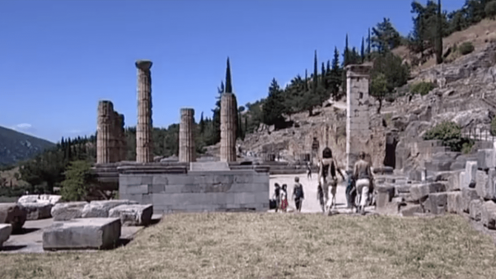 Les pêcheurs stupéfaits aperçurent alors, accroché à flanc de falaise, le majestueux sanctuaire d’Apollon qui s’était manifesté à eux sous les traits d’un dauphin. Apollon, qui les avait conduits jusqu’ici leur demanda d’être mes gardiens de sa divine demeure. Et c’est ainsi que la légende donna son nom au site de Delphes. Si les visiteurs aujourd’hui demeurent subjugués par la beauté du site, ils sont loin de ressentir la même impression que les pèlerins de l’Antiquité, venus consulter l’oracle, ou les athlètes venus participer aux jeux pythiques.